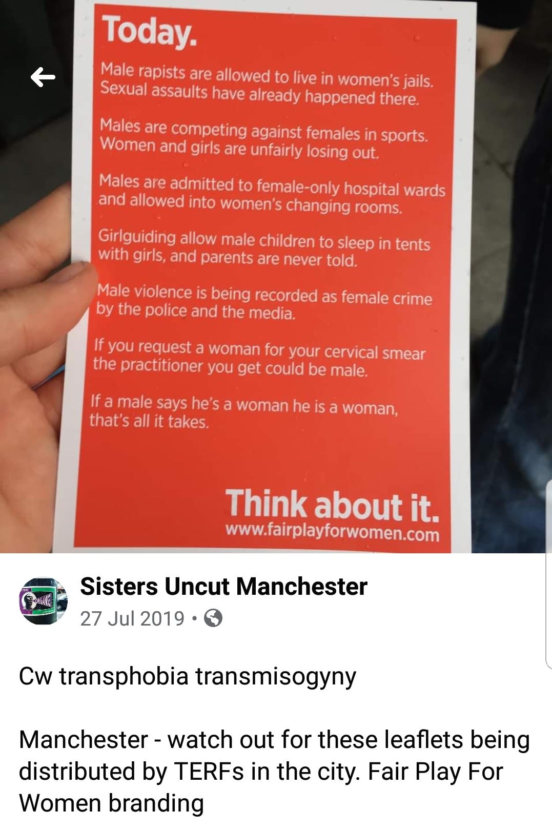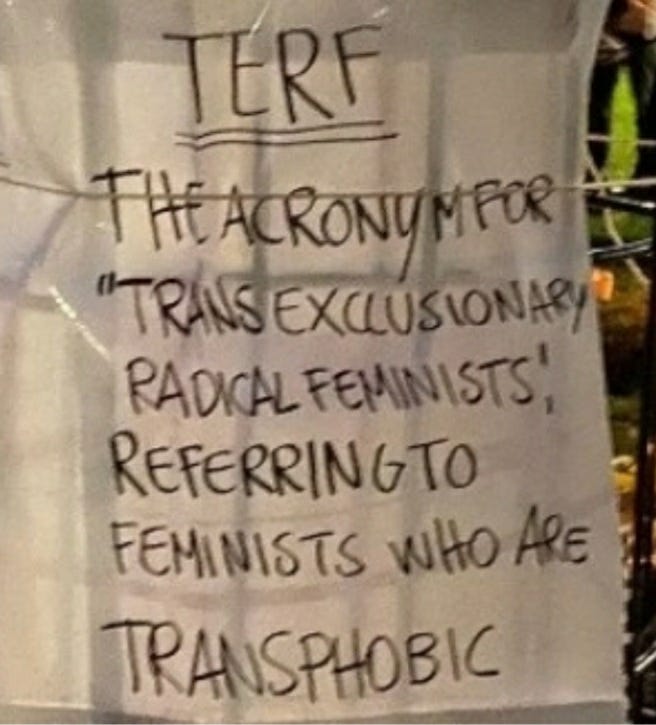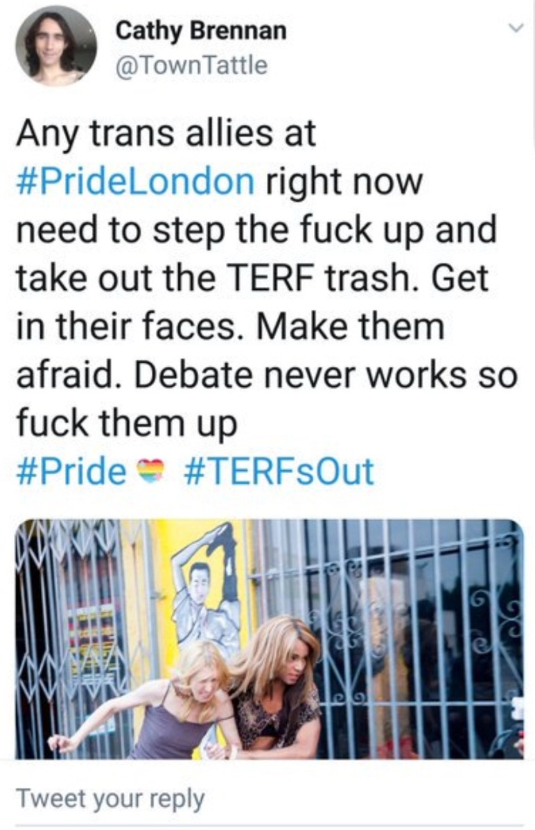 SU have a long history of abusing feminists they call TERFs, as, somehow, believing biological sex is integral to feminism and women’s experience of oppression is an act of transphobic hate. Like the early stages of any psychopathic, genocidal movement, it must be nipped in the bud. Apparently, feminism based in biological reality is exactly the same.