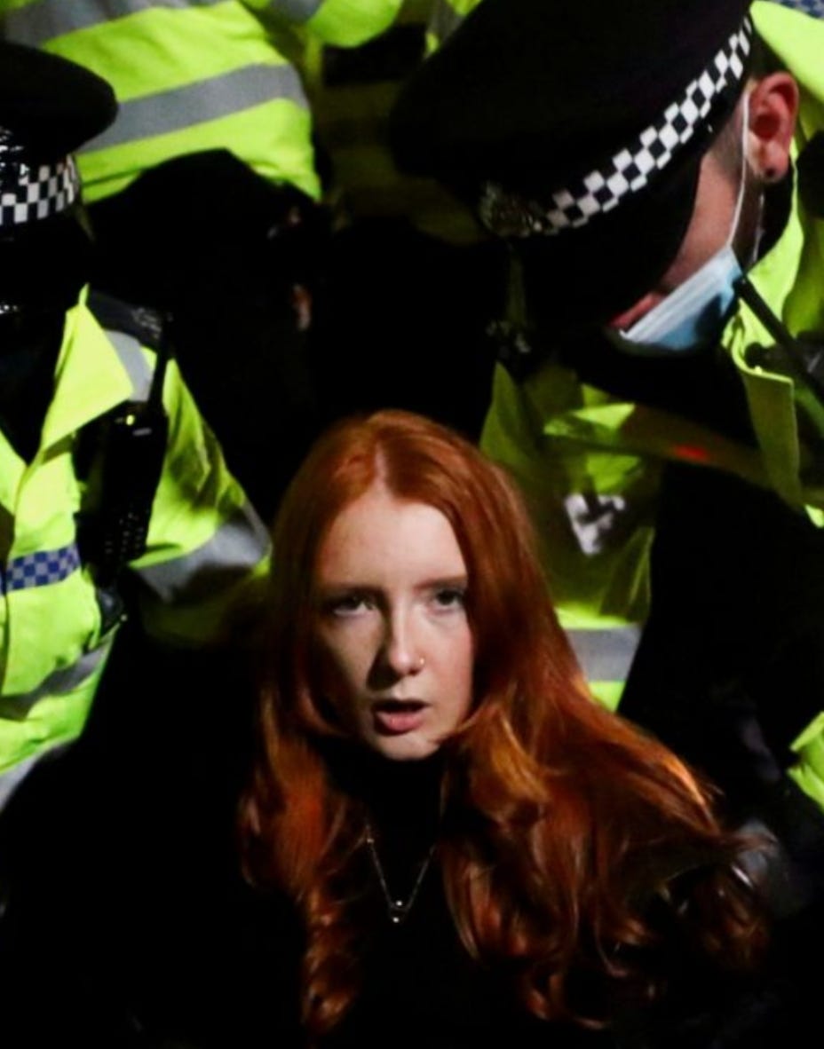Reclaim These Streets stood down after their application was refused (of course, suppressing protests is an extremely serious, worrying move – no argument from me there) and, like circling vultures, Sisters Uncut saw the opportunity to take the stage, and the headlines – their favoured tactic. Which is understandable when all you have is a delusional victim-centric, white-knuckled grip on what you feel should be yours, but can’t be arsed with difficult, complex political questions or weighing up competing needs, rights and wants. Embrace tunnel vision, demand and destroy. Go hell for leather in the gobshite stakes, kick off. All you need is rage. Welcome, Sisters Uncut! Preach your version of non-carceral, police abolitionist, intersectional feminism!