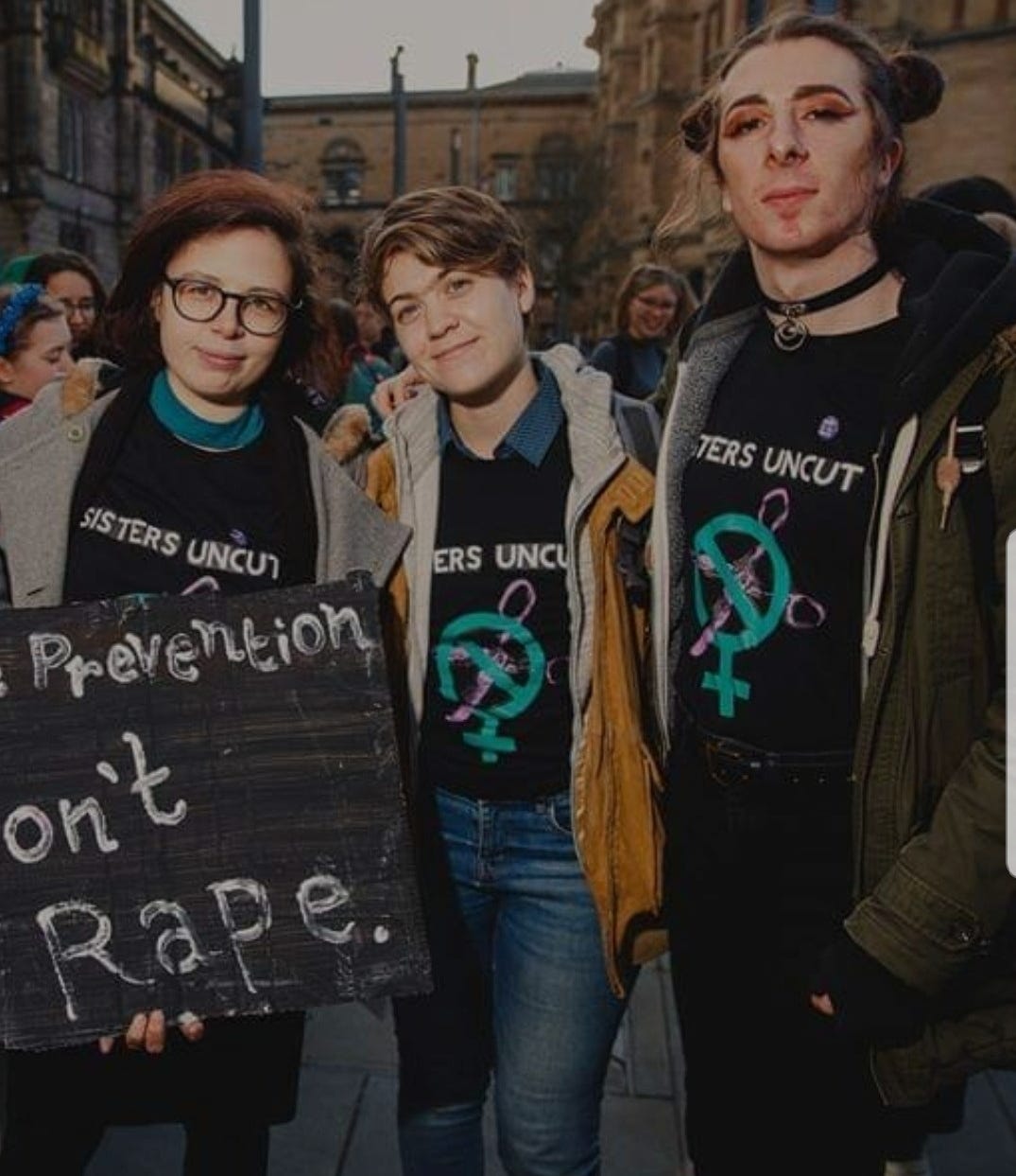 So, naturally, harassing women at a protest against rape is their prerogative. Defending an extremely low-effort ‘trans woman’ who took the name of American feminist Cathy Brennan in deliberate harassment and attempted to punch Julie Bindel and invites attacks on feminists on social media is too. Also, it’s imperative to blockade a feminist meeting arranged to discuss the (now abandoned) gender recognition act reform. Various other links to demonstrations where women have been roughed up, ejected and had their signs / literature removed by male ‘allies’ abound.